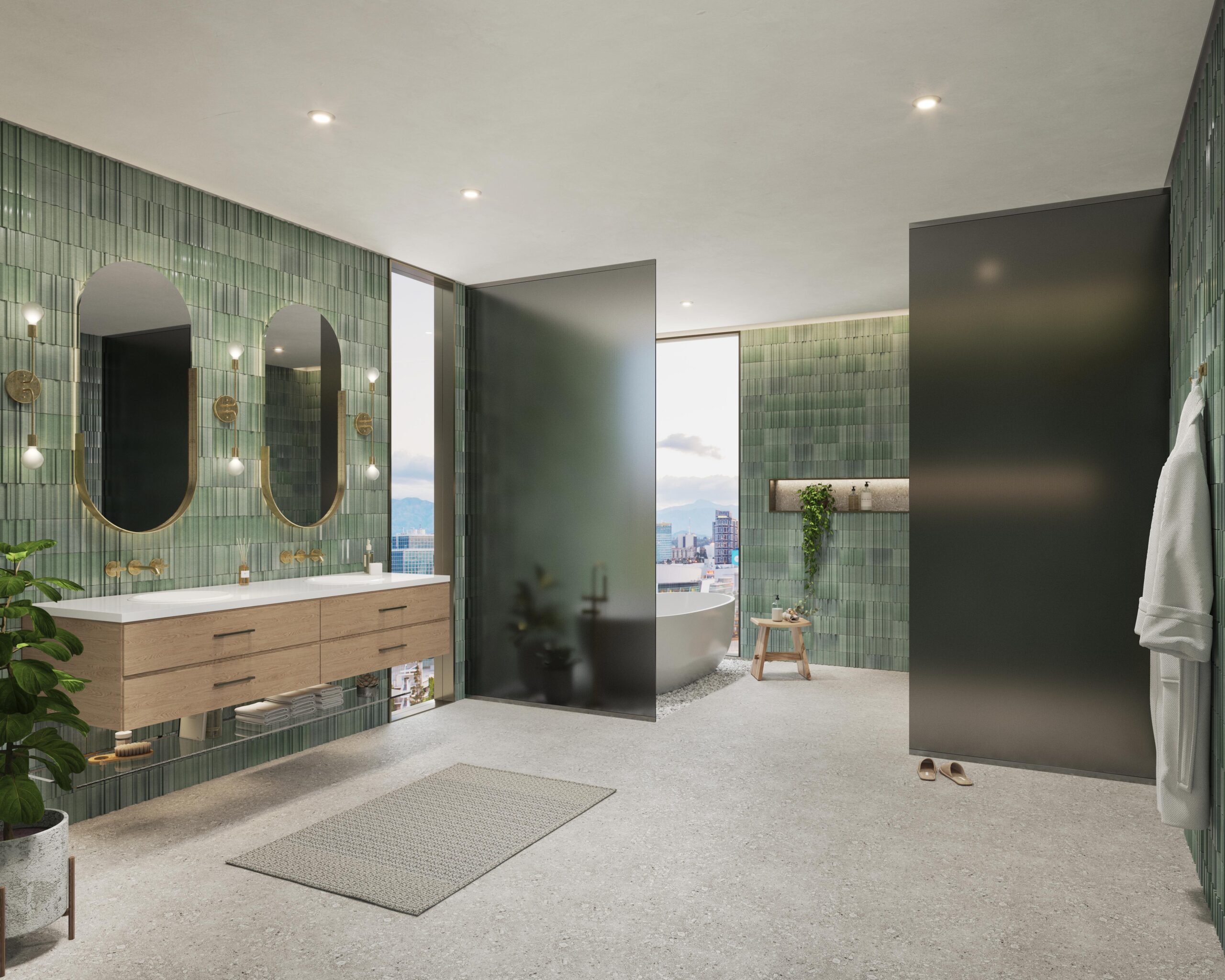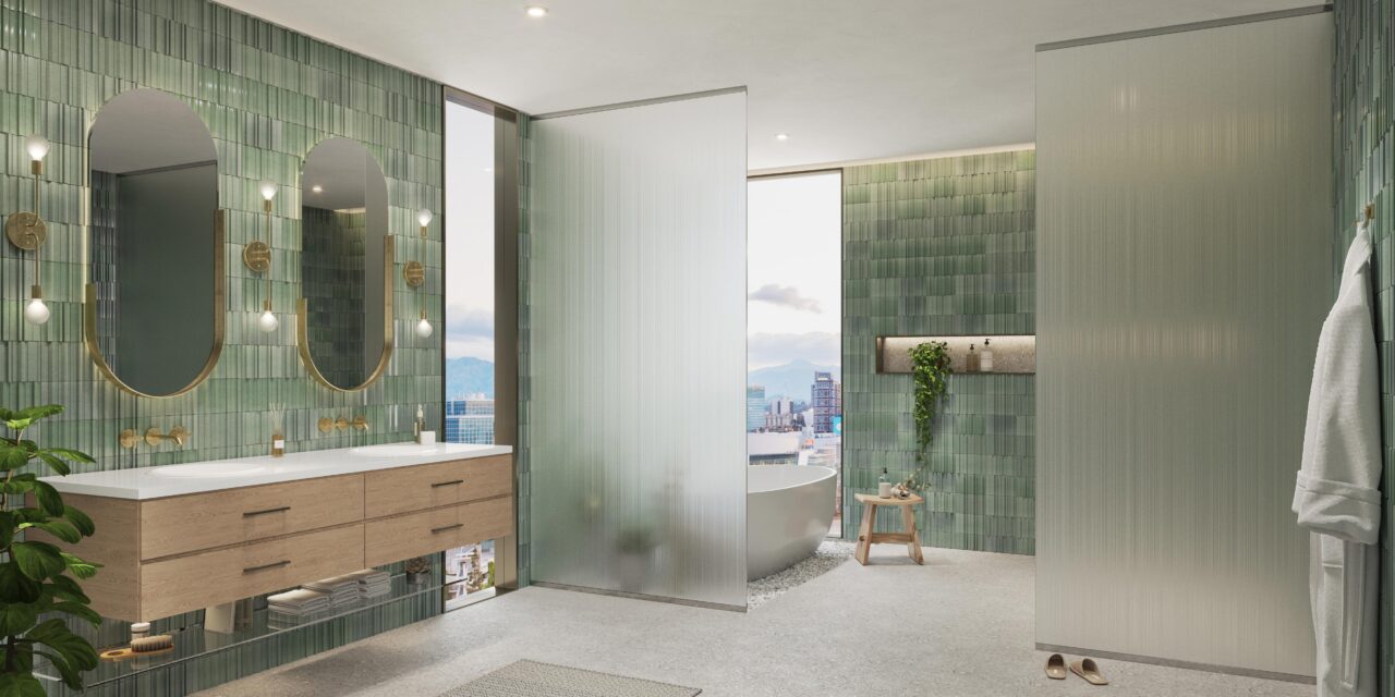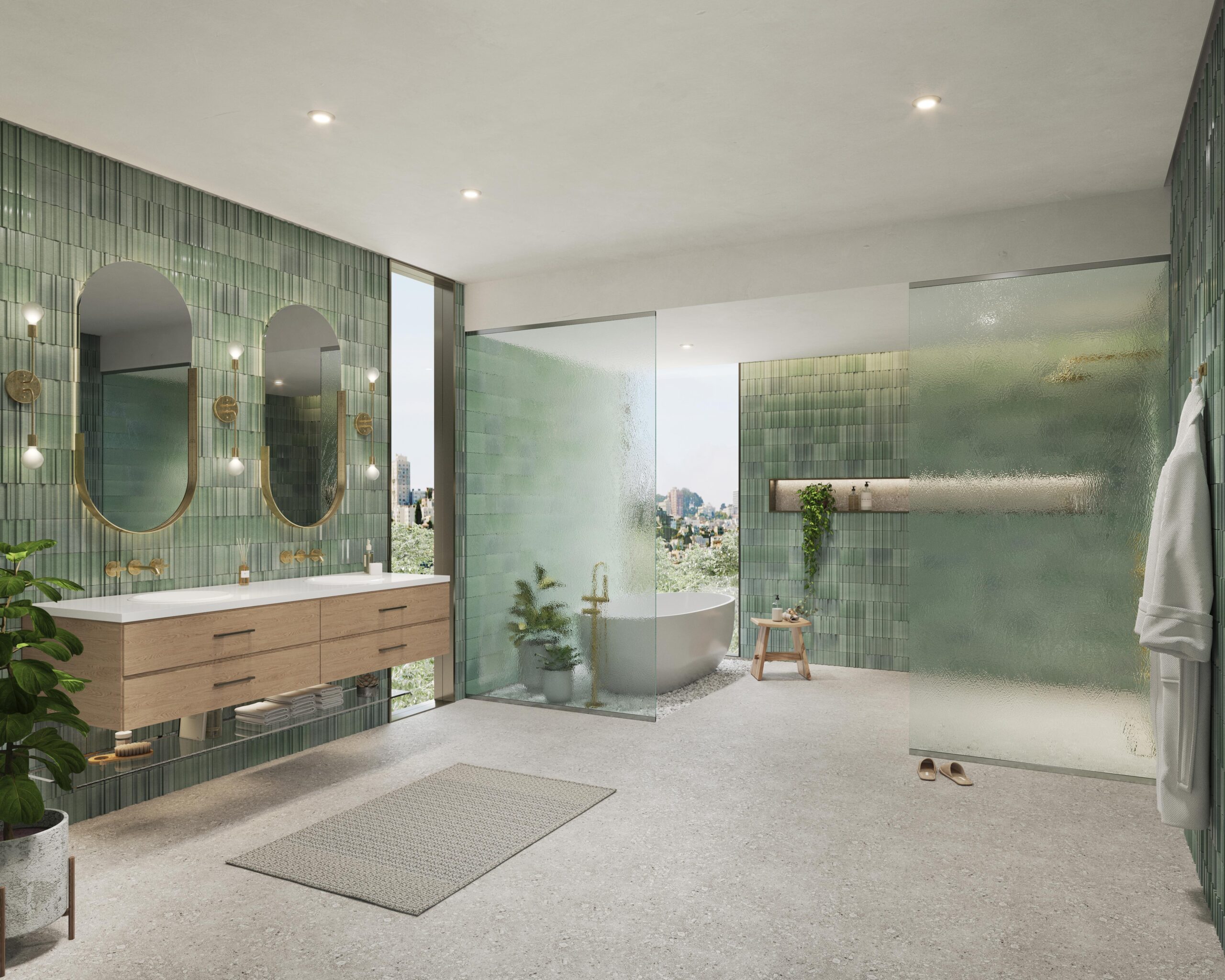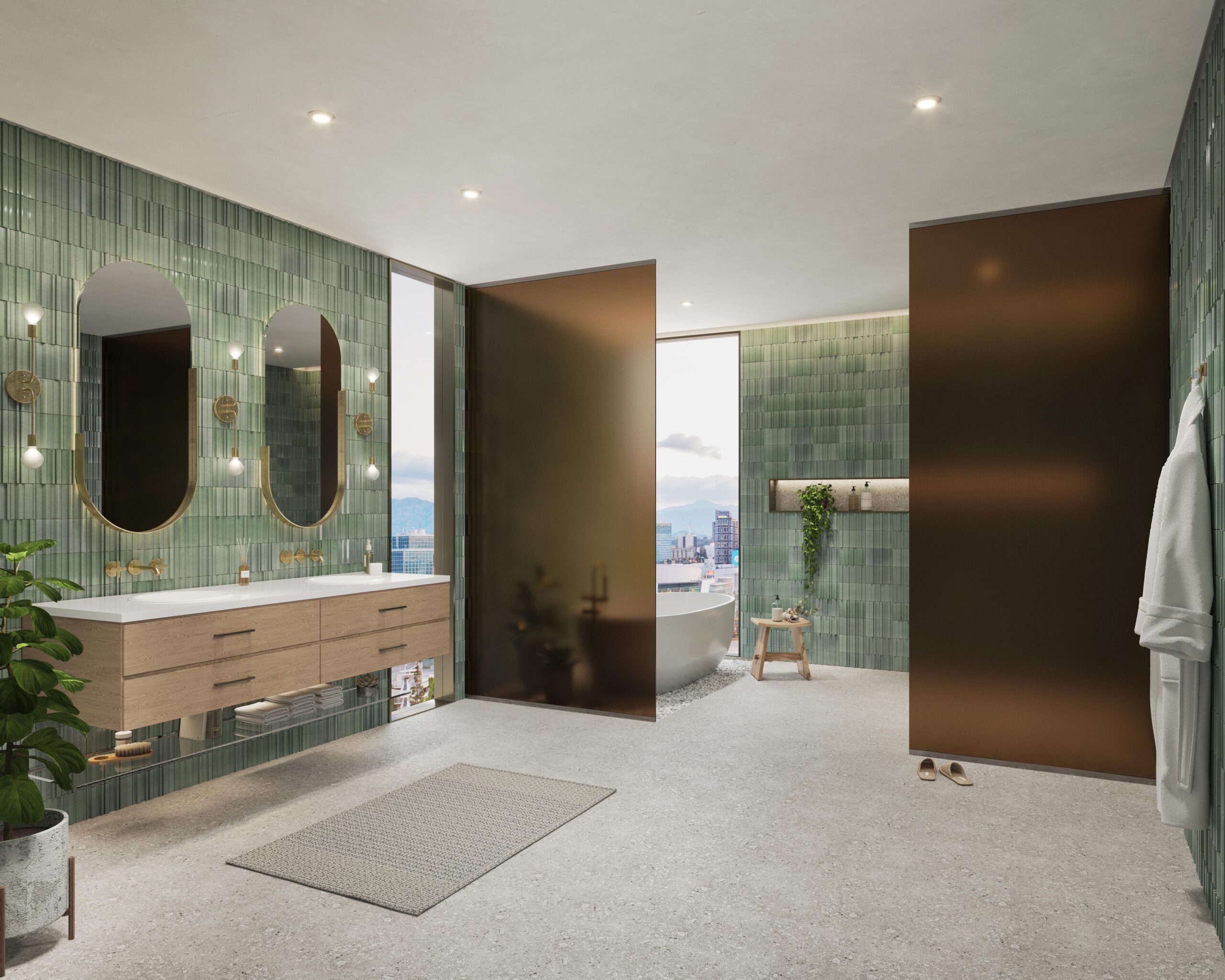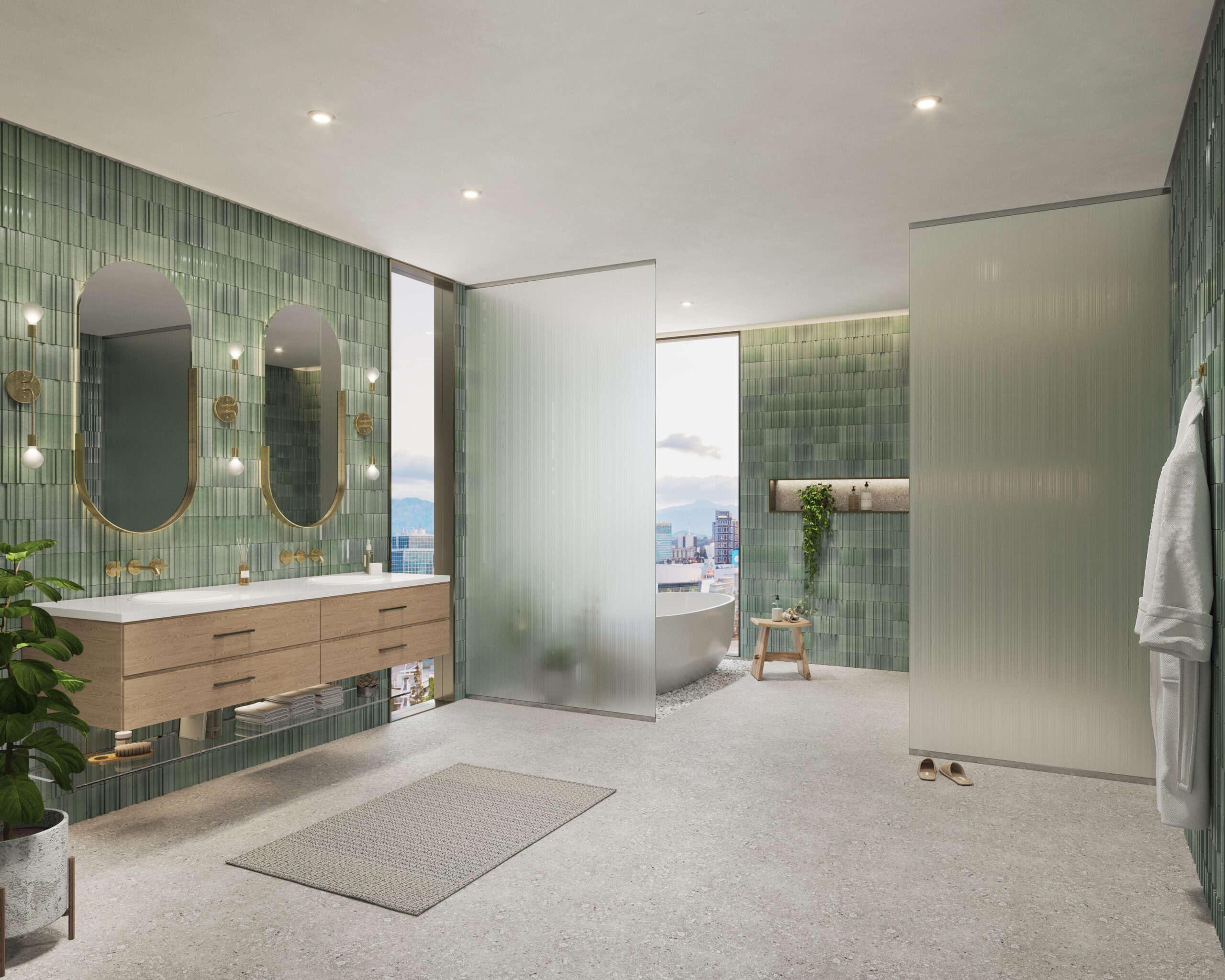 Bendheim’s 10mm monolithic tempered glass is perfectly suited for both framed and frameless shower enclosures in hospitality and residential applications. An elegant solution, it combines a timeless aesthetic with shorter lead times.