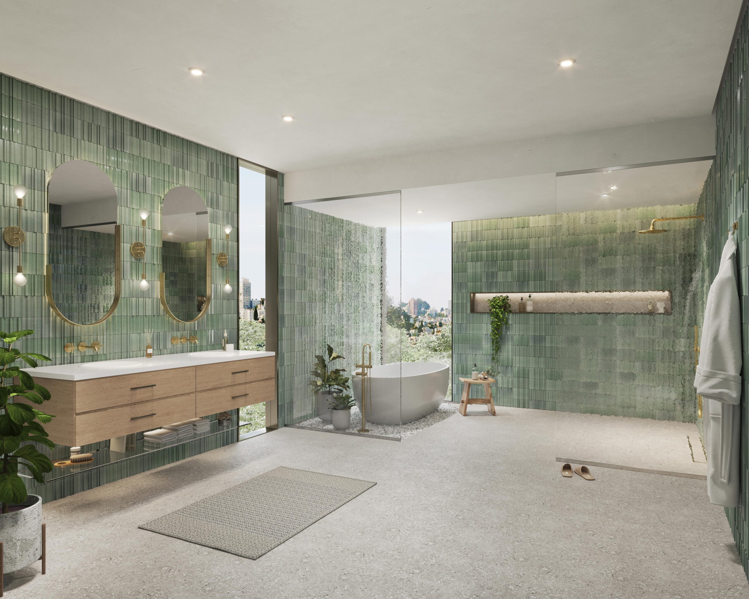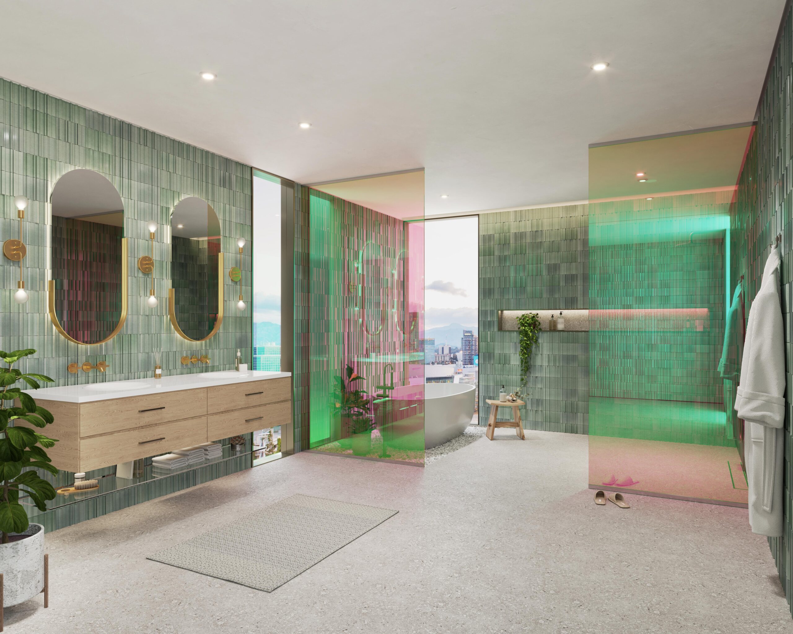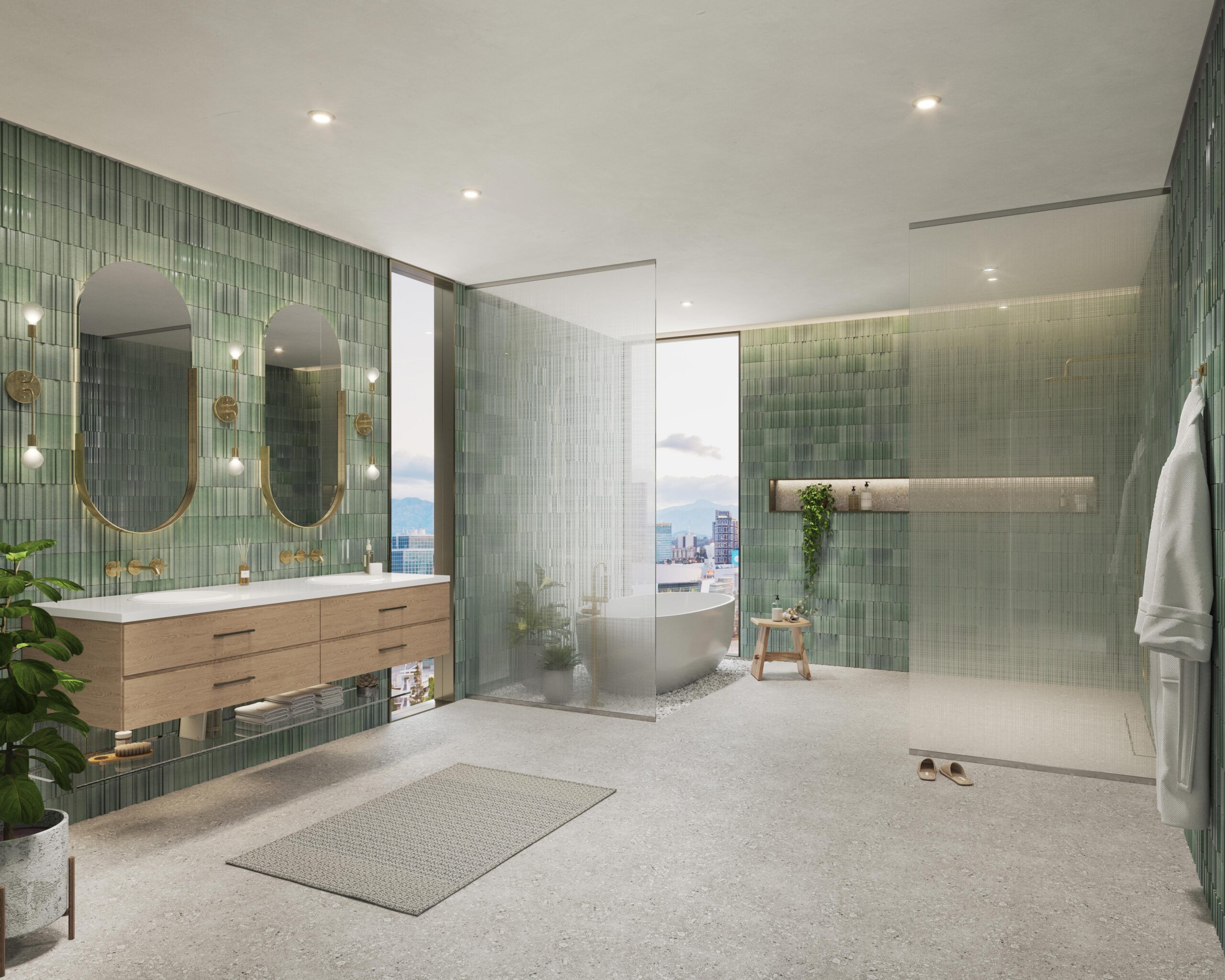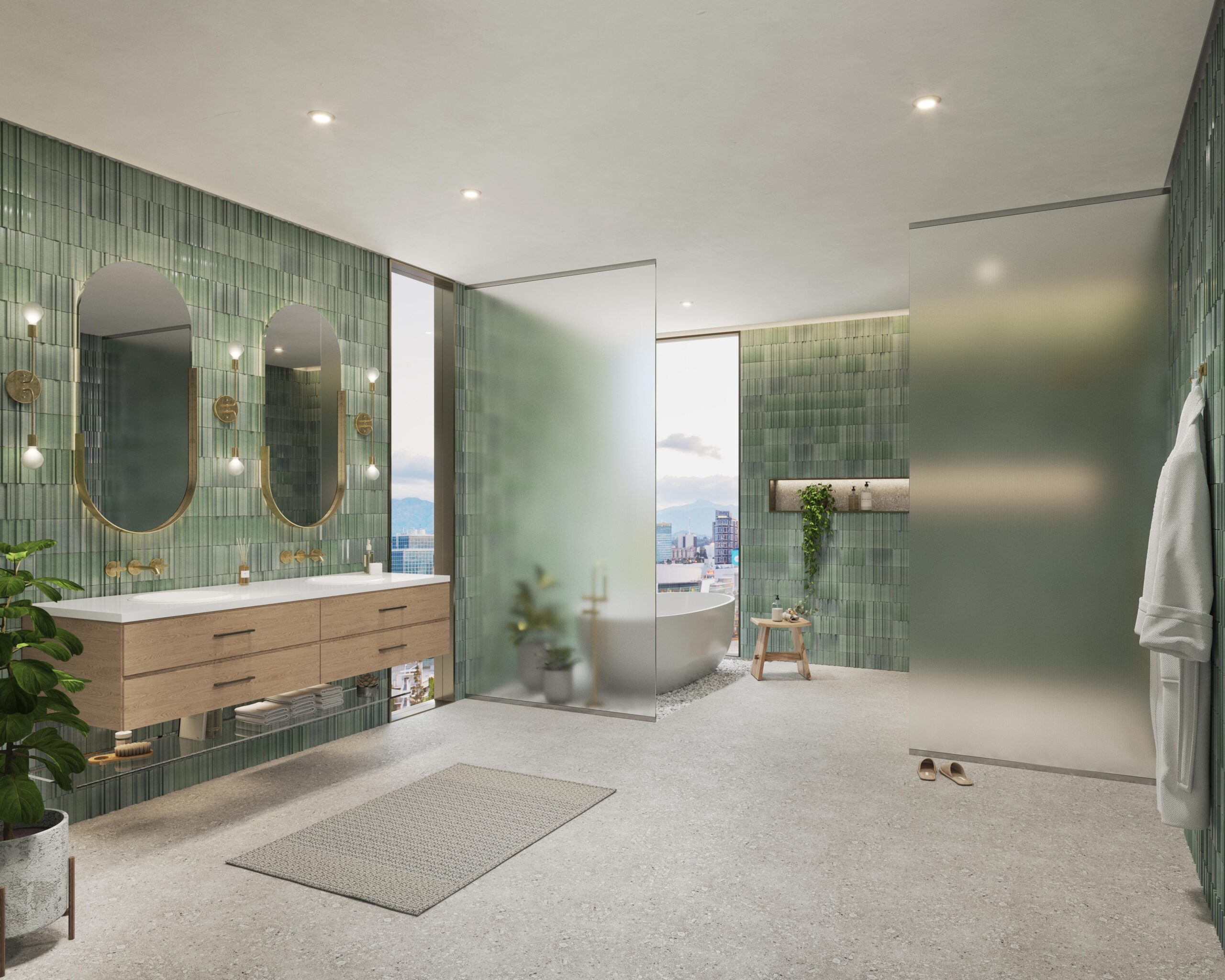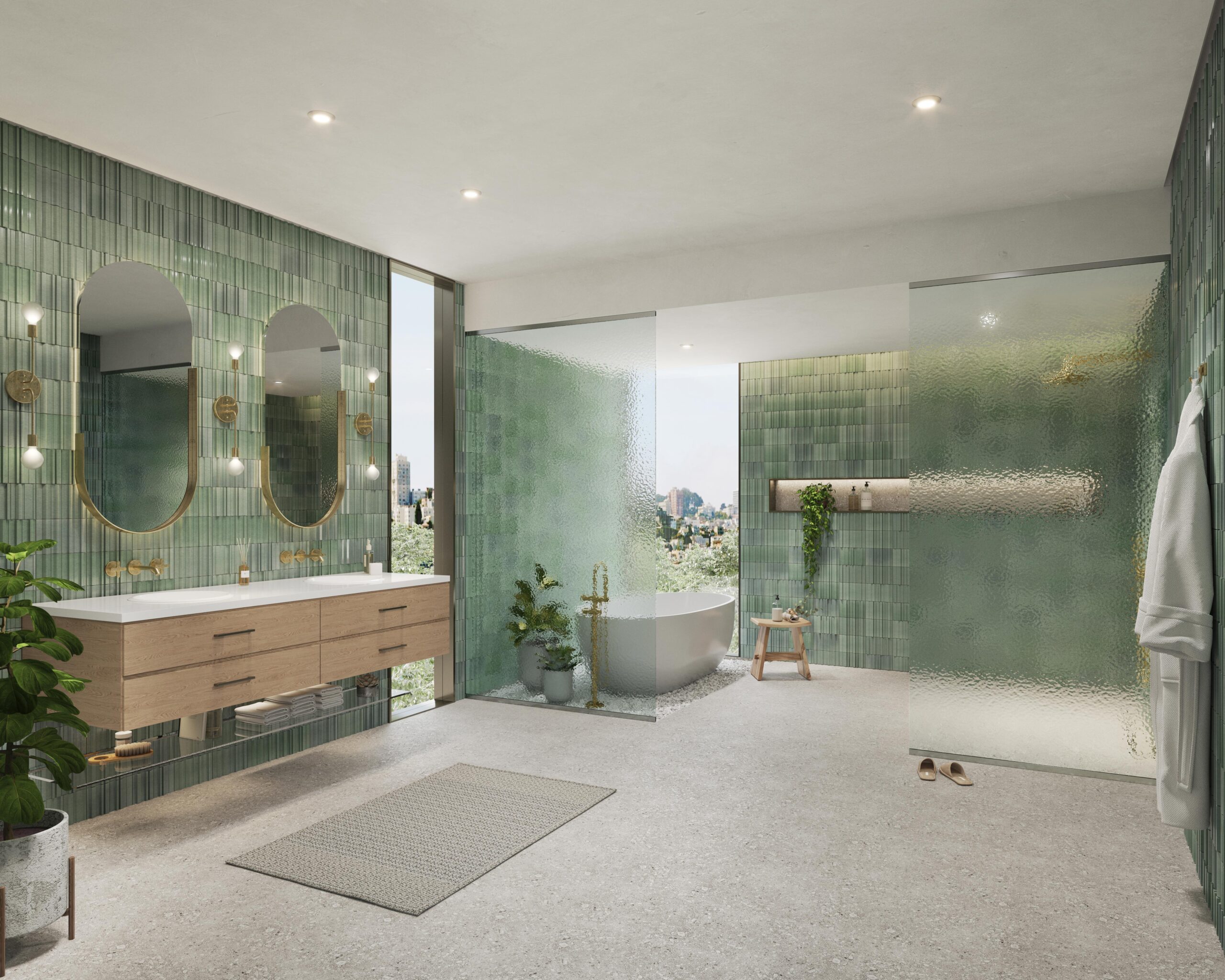 Bendheim’s 10mm monolithic tempered glass is perfectly suited for both framed and frameless shower enclosures in hospitality and residential applications. An elegant solution, it combines a timeless aesthetic with shorter lead times.