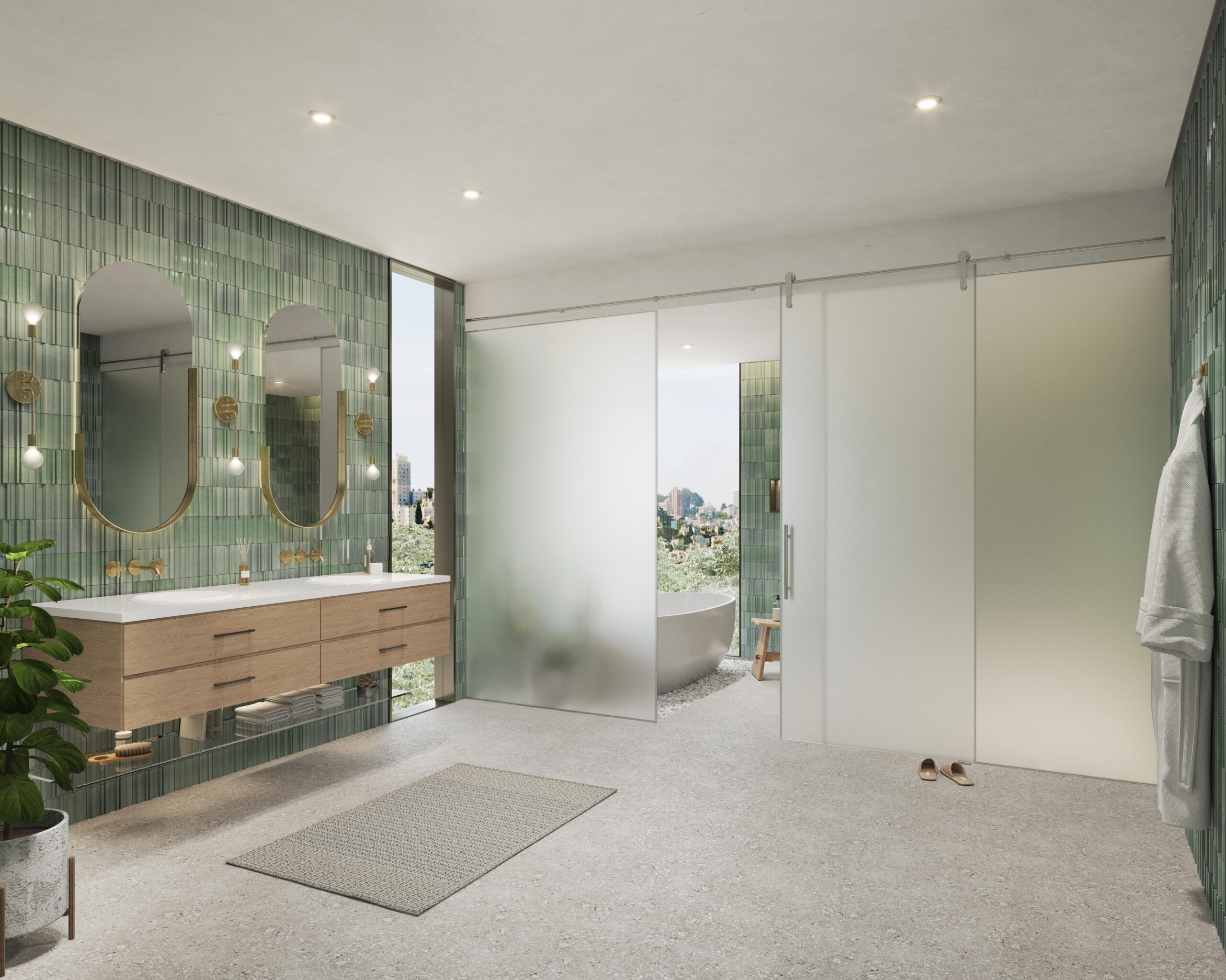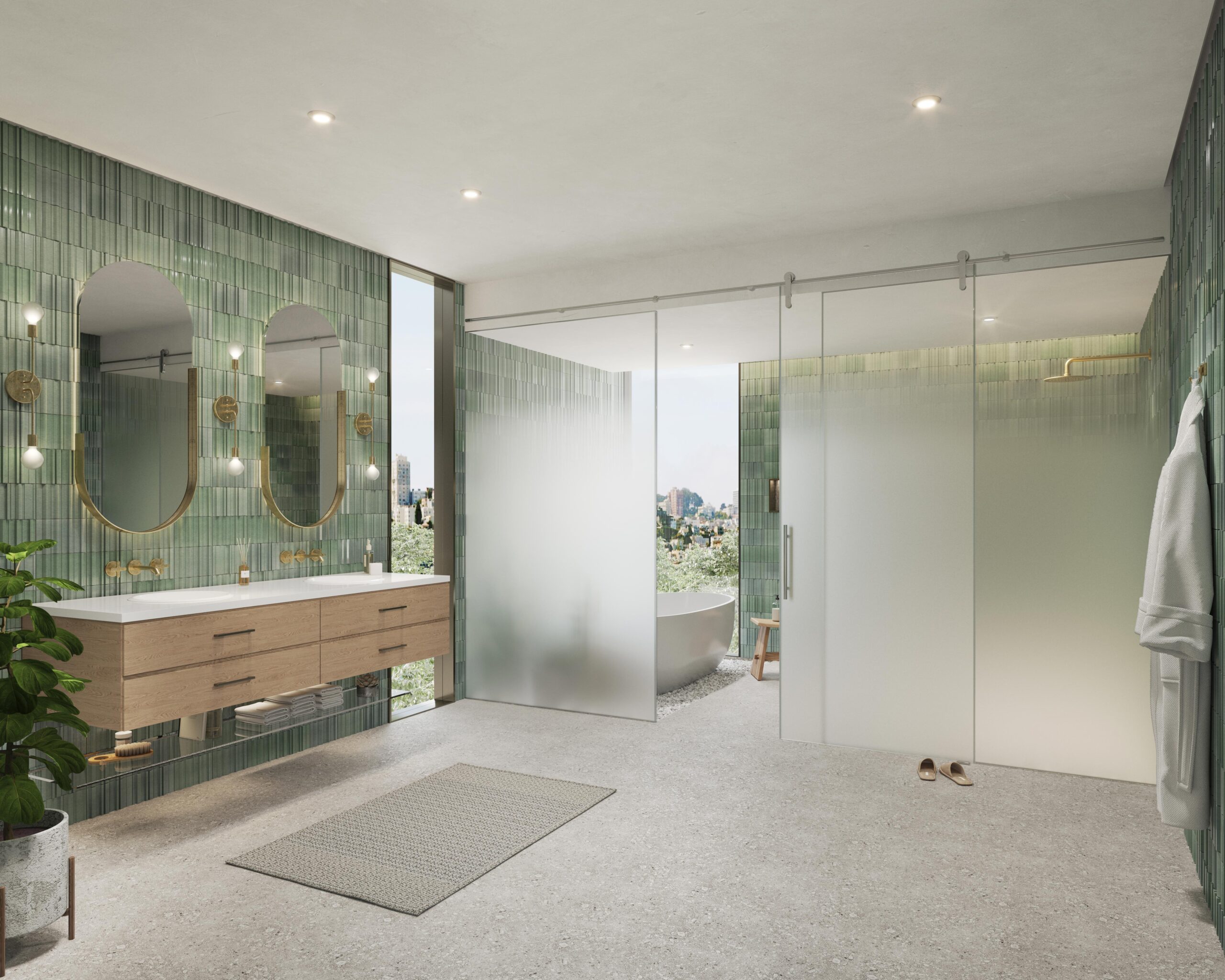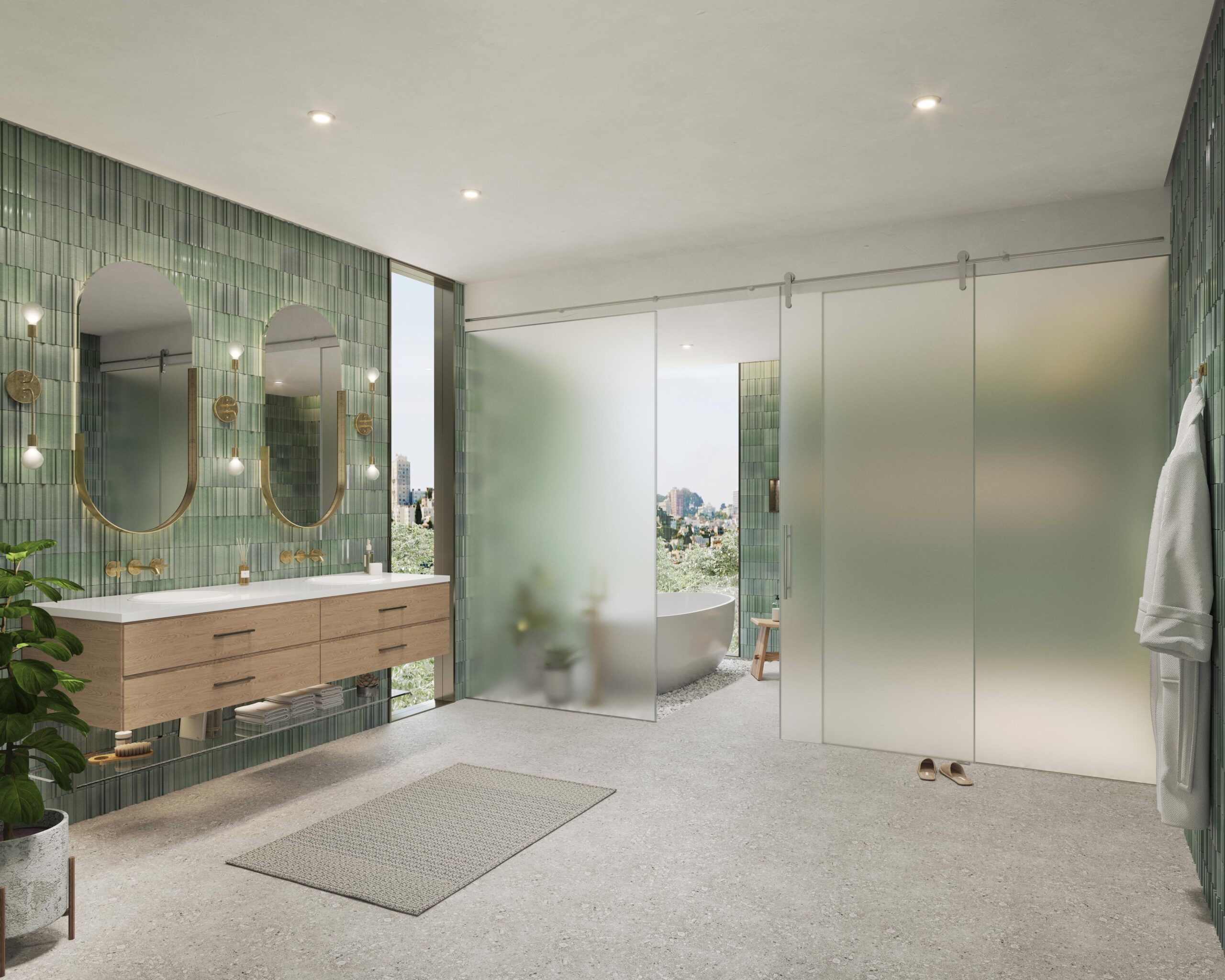 Low-iron (ultra-clear) glass textures and etched patterns elevate the design and add visual privacy