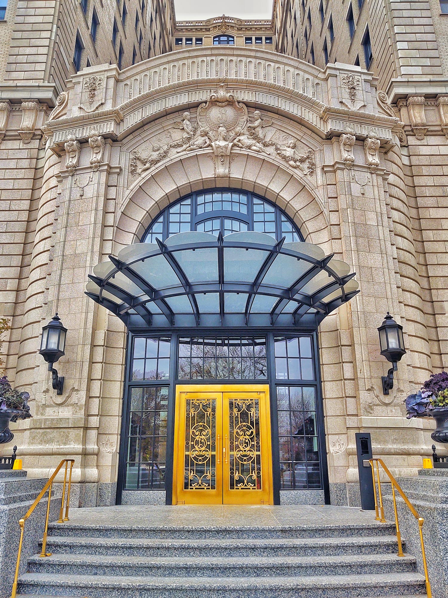 The Belden-Stratford is a historic luxury apartment building located in the Lincoln Park neighborhood of Chicago, Illinois. Built in 1923, it originally operated as a hotel. A recent renovation saw the addition of an elegant glass and steel canopy over the main entrance of the building, which features textured glass from Bendheim.