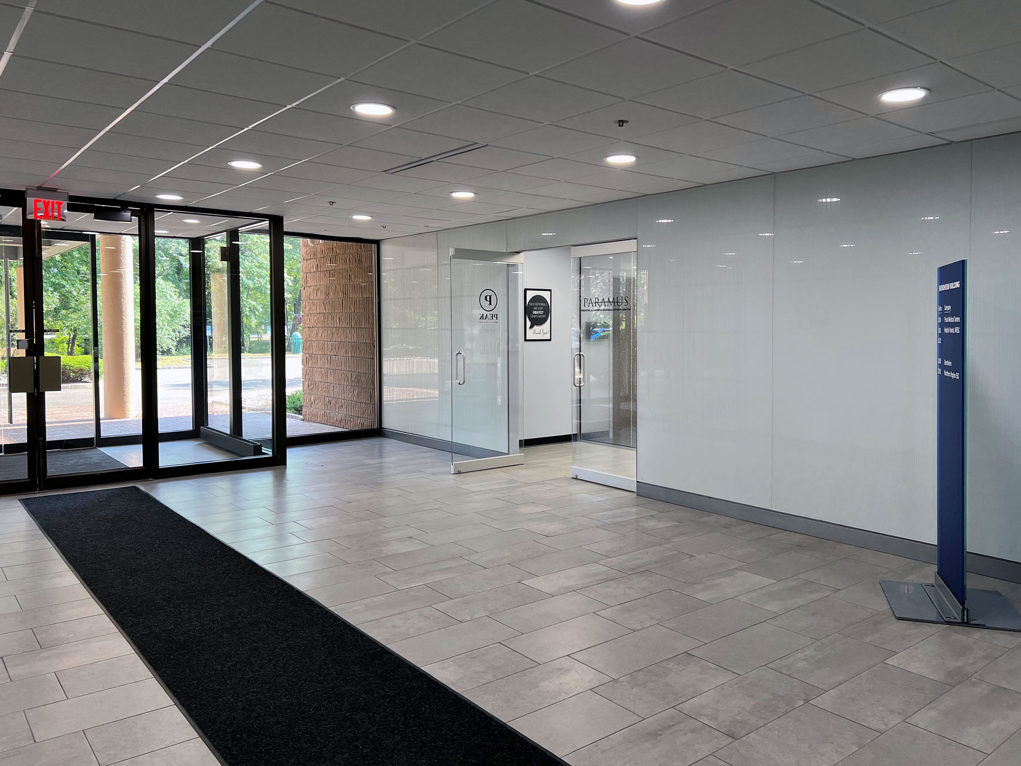 The main lobby of Bendheim’s headquarters are clad in back-painted glass with a linear etched pattern. The glass is installed using Bendheim’s Z-KISS™ glass cladding system. Z-KISS™ is a concealed, frameless interior glass cladding system, meticulously engineered and factory applied. The proprietary KISS™ attachment method features fewer components and stronger connections, resulting in tougher glass cladding that is fully fabricated, faster and easier to install.