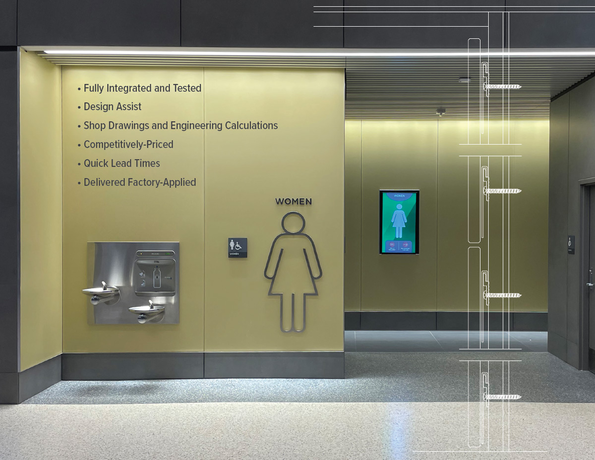 Concealed, frameless interior glass cladding system – meticulously engineered and factory applied. The proprietary KISS™ attachment method features fewer components and stronger connections, resulting in tougher glass cladding that is fully fabricated, faster and easier to install.